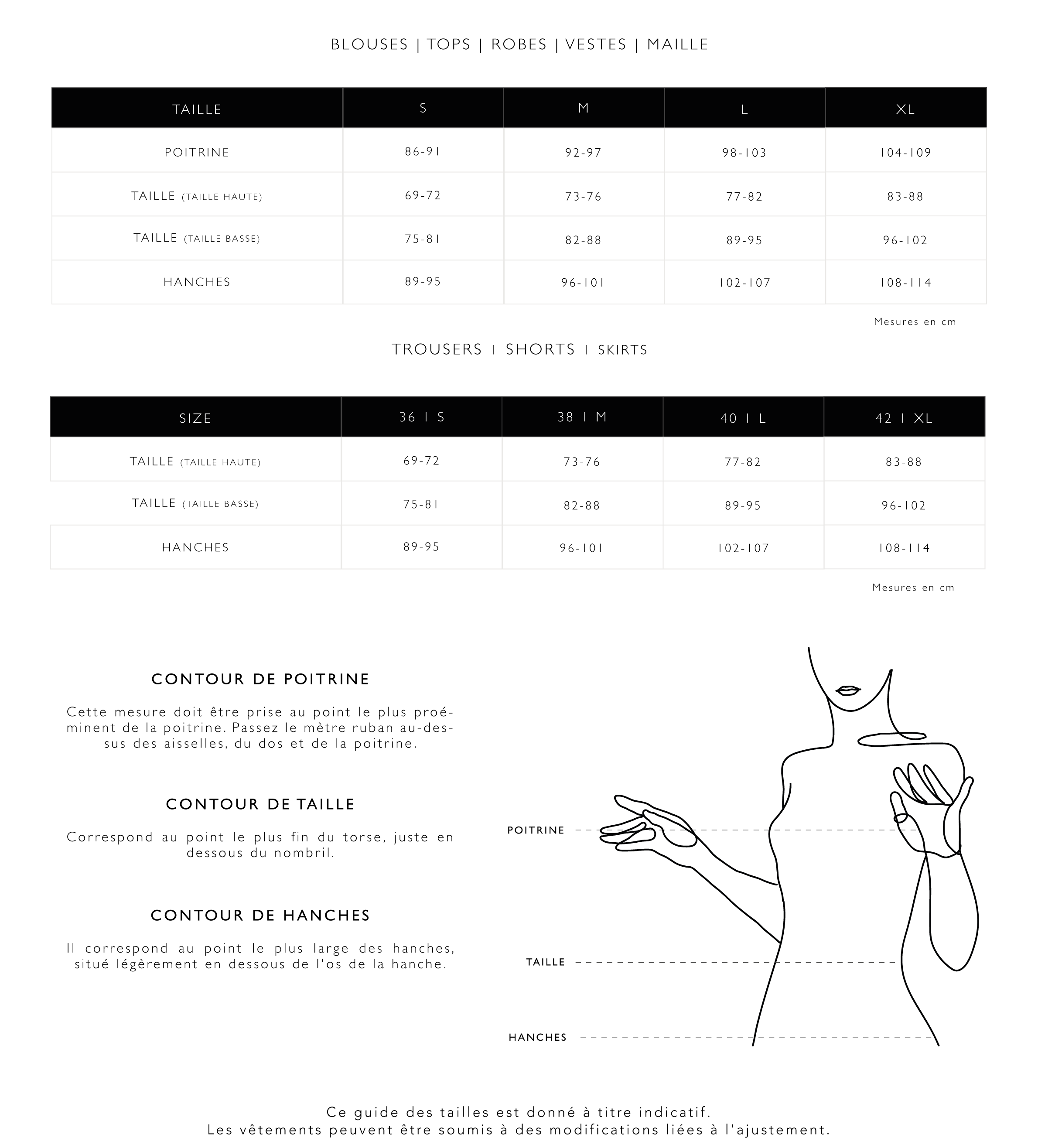 GUIDE DES TAILLES
